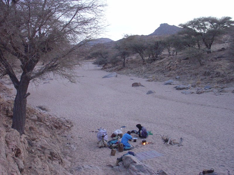 We make camp on the second night in a dry river bed. There must be people living